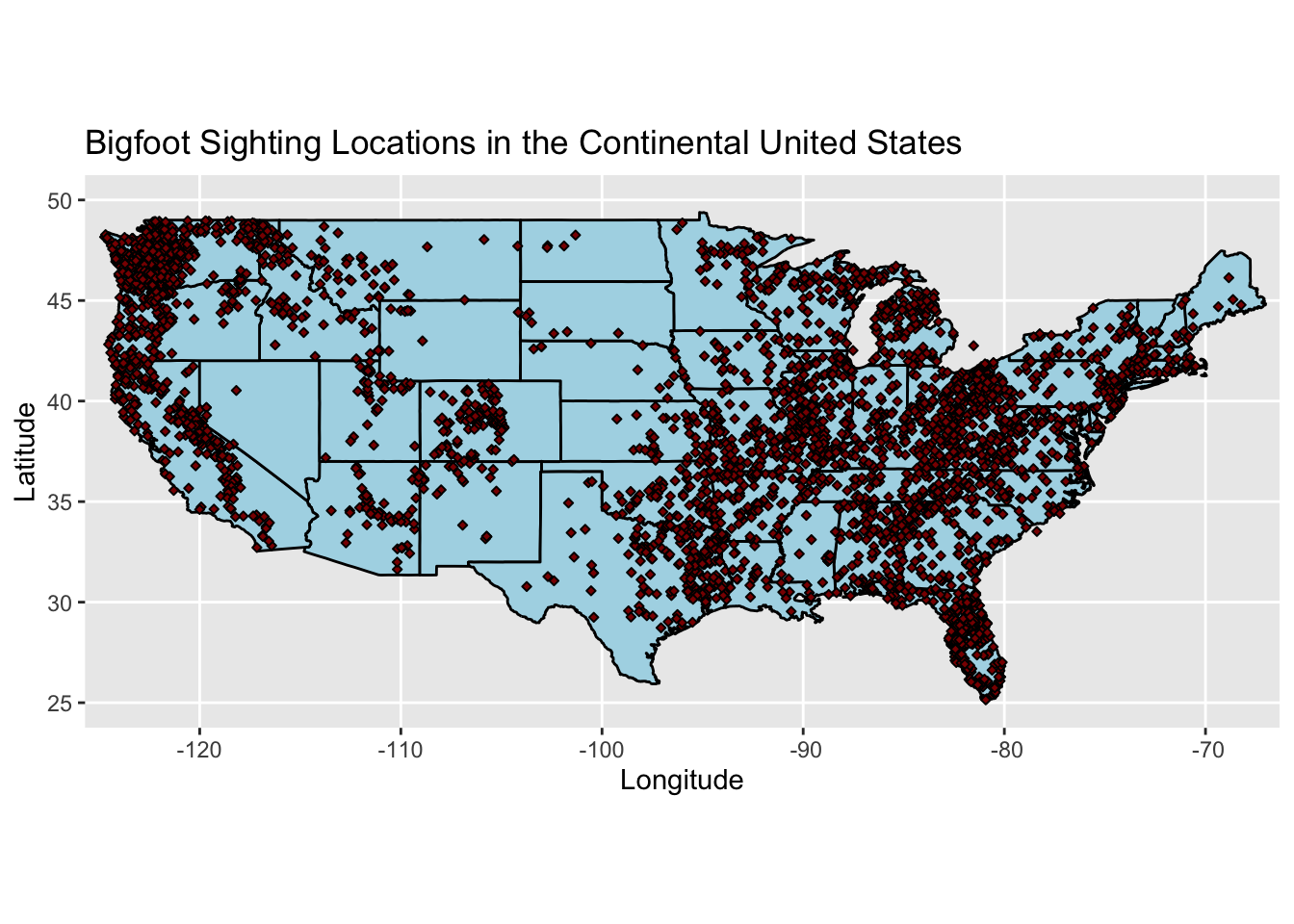 title = "Bigfoot Sighting Locations in the Continental United States")